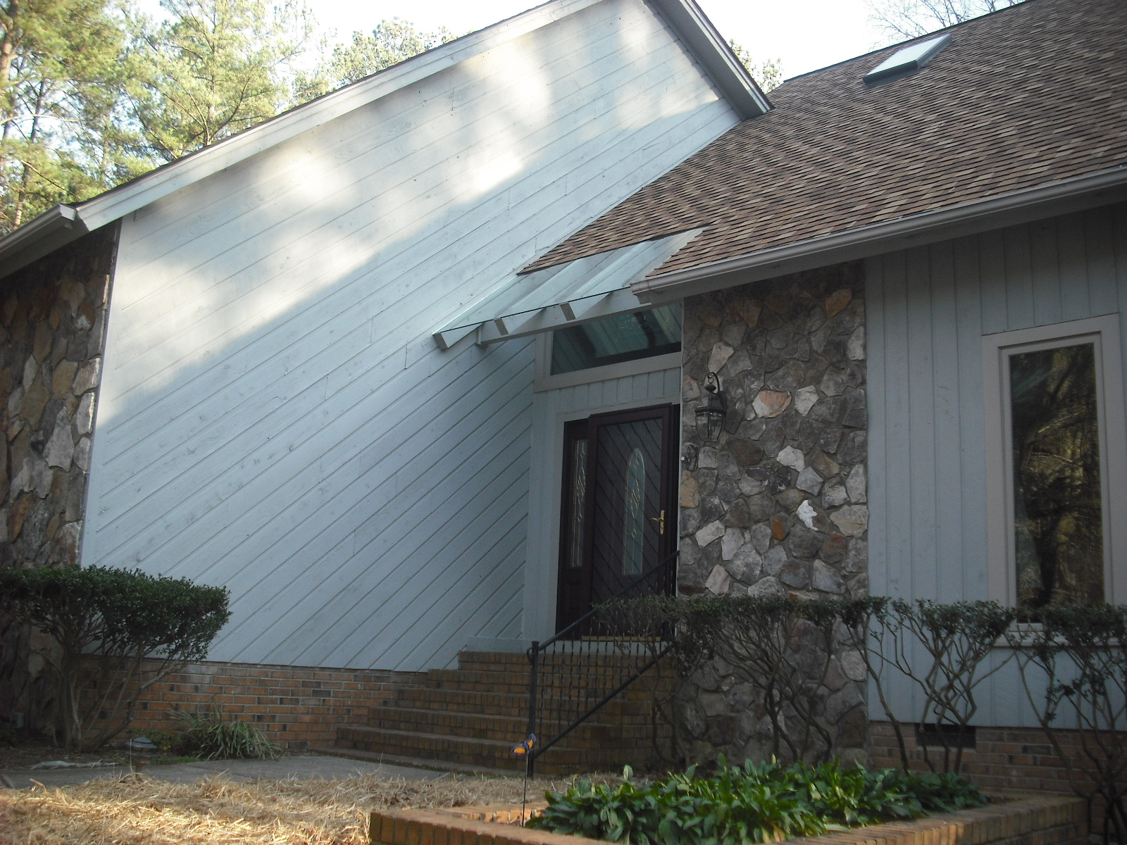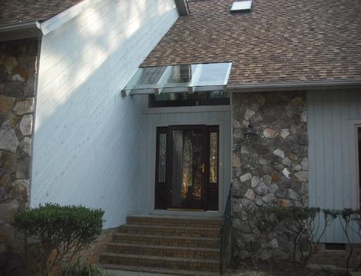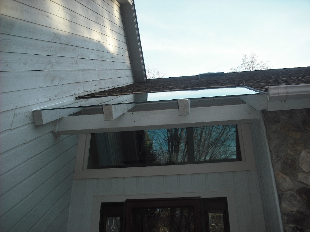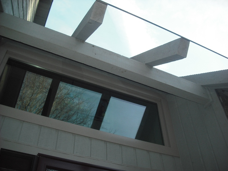 A glass roof? Why not? The sleek lines of this completed porch roof are the payoff